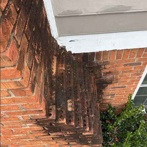 • Crumbling mortar joints. Deteriorating mortar between bricks weakens the chimney structure and often stems from prolonged moisture exposure.